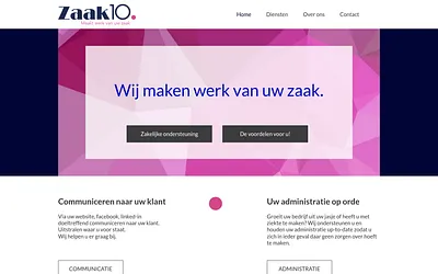 Zaak10. Zakelijke ondersteuning met hart voor uw zaak. Of we nu aan de slag zijn met uw marketingactie, communicatiemiddel of boekhouding en urenregistratie, wij maken werk van uw zaak. Met een 'no nonsense' mentaliteit werken wij aan uw bedrijf of